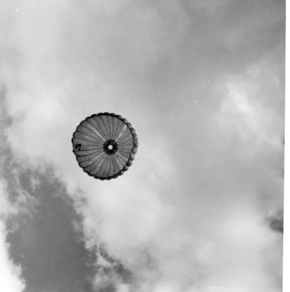Fallskärmsjägarskolan Karlsborg 1959.Fallskärmshoppning.