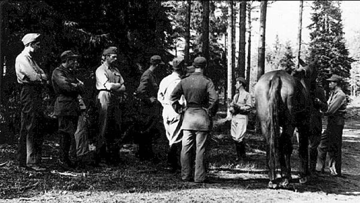 Bataljonsveterinär Settergren ,till vänster om hästen.
