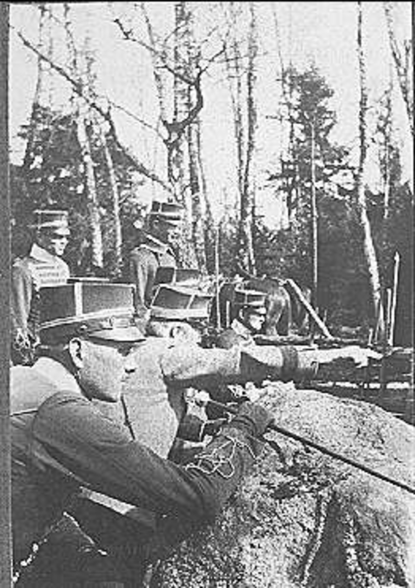 Fältskjutning. "Mot - - - - - - - - Eld!"