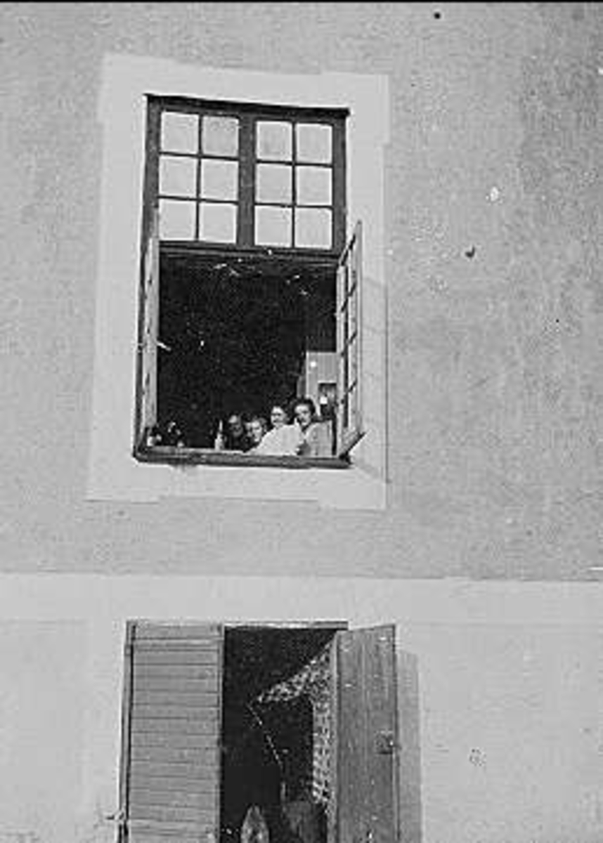 Ove och "pigorna". Obs, Oves hund i dörren.