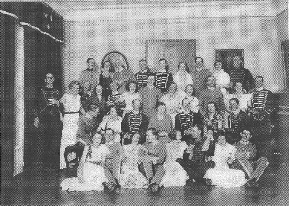 K3, kavalleriofficersaspirantskolan på 1930-talet. Skolbal på officersmässen.
