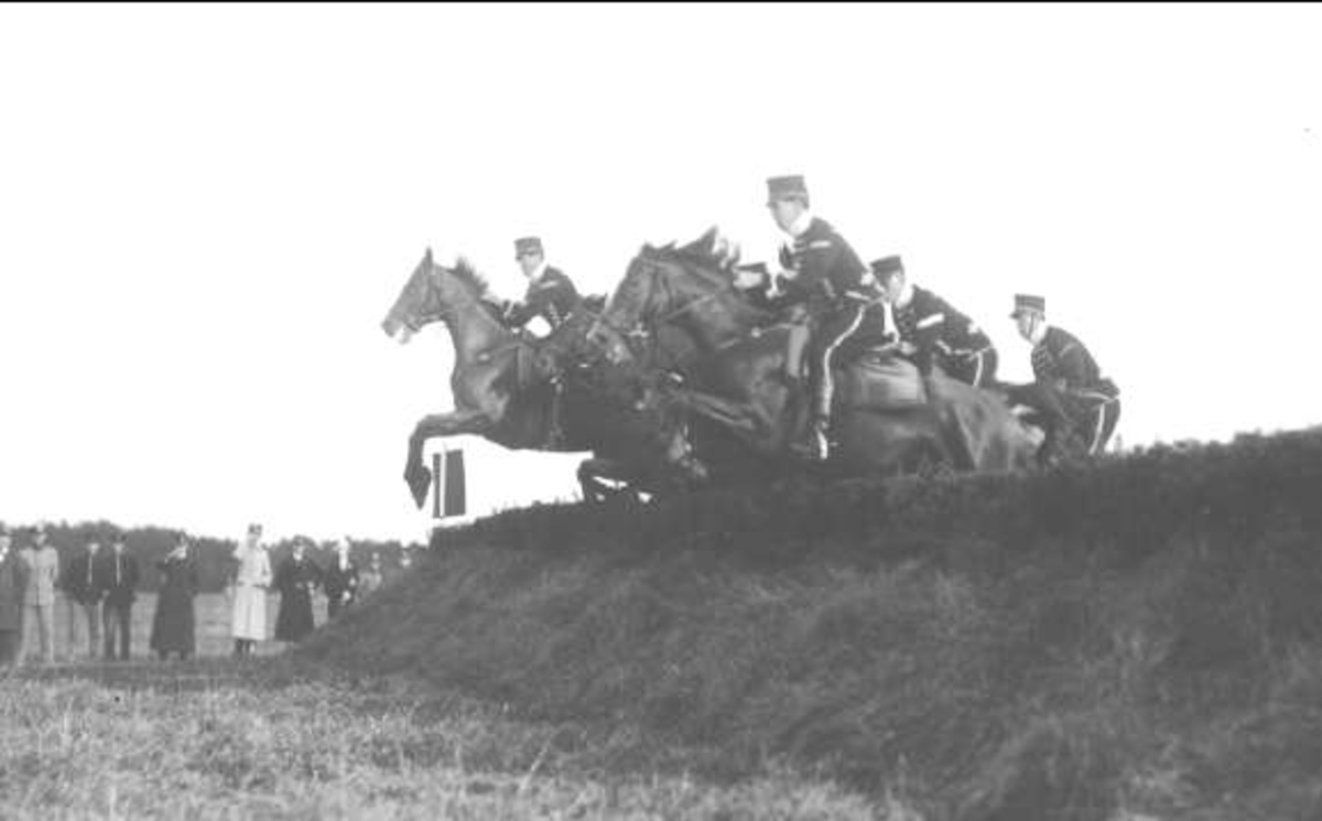 K 3 furirernas jaktlopp på kapplöpningsbanan (jordvallen vid vakten P4) söder om K 3 kasern, Skövde.