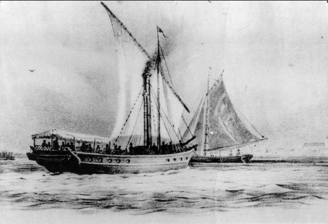 Ångfartyget "Linköping". Det första propellerdrivna fartyget på Göta Kanal, levererat av Motala verkstad år 1846. Endast förstoring 38 x 28 cm.