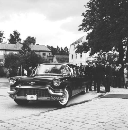 Kungabesök år 1962. Gustaf VI Adolf vid ankomsten till Karlsborg. Endast neg finns.