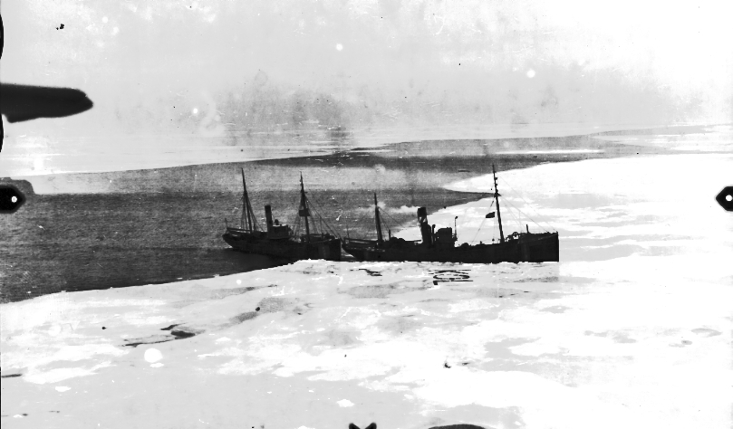 1942. F6 från Karlsborg undsätter infrusna trålarna Mats och Ibis väster Väderöarna. (Texten "KOL" skrivet på isen). Albumet är en del av en donation från Karl-Axel Hansson, Karlsborg. Förteckning över hela donationen finns i albumet samt som Word-dokument.