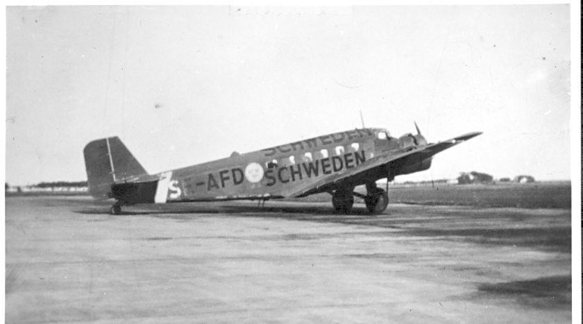 F6 Karlsborg 1944. Flygplan Ju52 (SE-AFD) "Vikingaland". Albumet är en del av en donation från Karl-Axel Hansson, Karlsborg. Förteckning över hela donationen finns i albumet samt som Word-dokument.