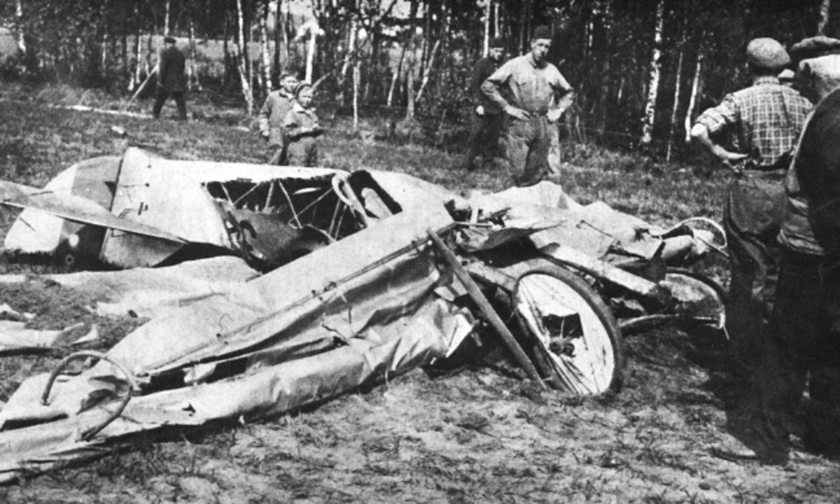 Karlsborg 1934. Björn Lindskogs "Tummelisa" efter haveri i Åsen vid nuvarande västra fältgränsen.