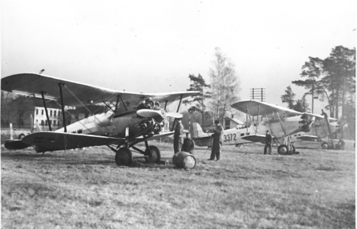 Karlsborg 1934. Bristol Bulldog J7 samt Fokker S6.