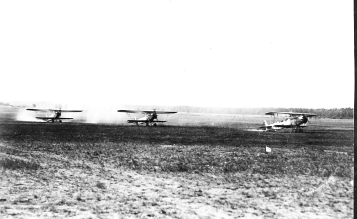 Karlsborg 1938. S6:or taxar in efter landning på Karlsborgsfältet.