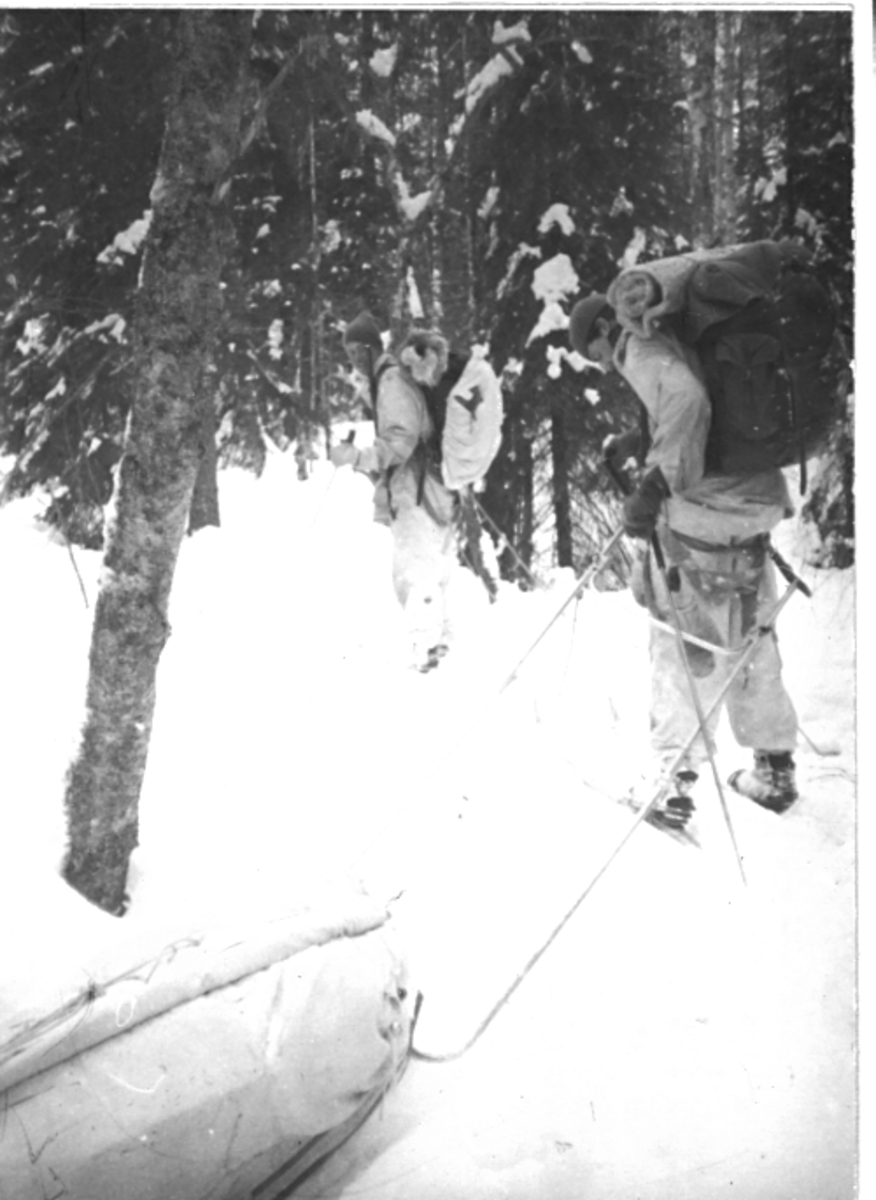 Titel: Fallskärmsjägarskolan Karlsborg slutet av 1950-tal. Vinterövning.