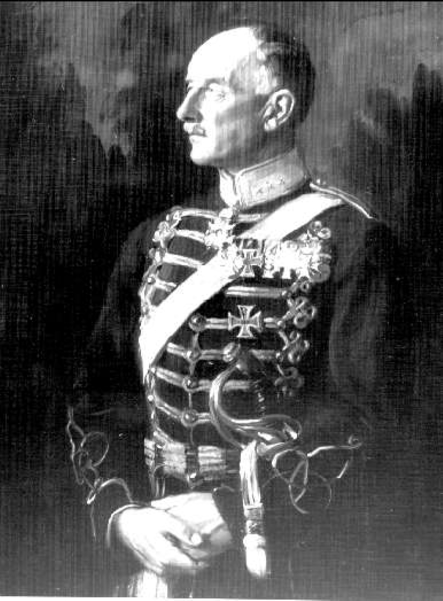 Avfotograferad målning. Överste Gilbert Hamilton, chef för Smålands Husarer, "fader" till tobaken "Hamiltons blandning".