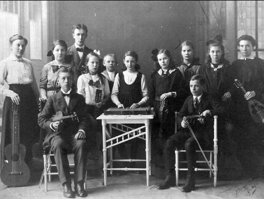 Karlsborgs missionsförsamling, juniorernas sång- och musikförening år 1920. Neg finns.