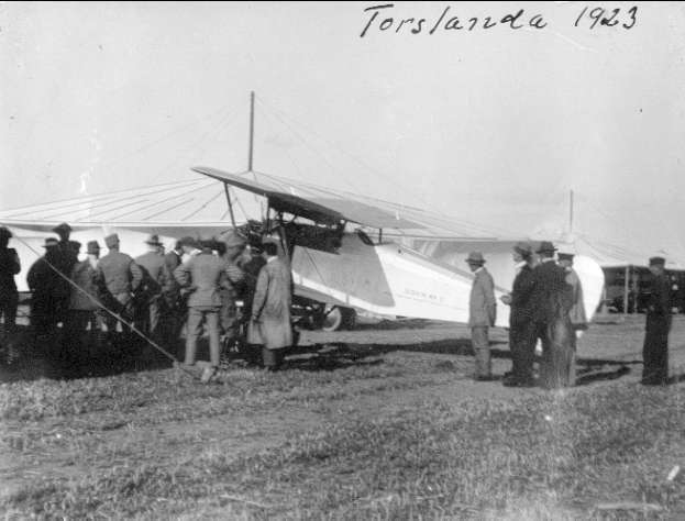 Flygplan Siddeley "Siskin" som förevisades på internationella luftfartsutställningen i Göteborg (Torslanda) 1923.