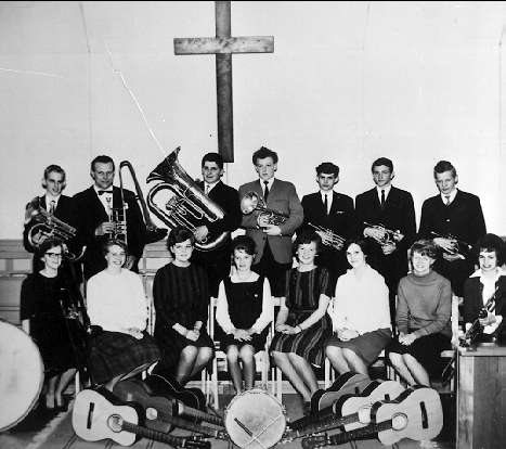 Karlsborgs Salemförsamling. Blåsorkester och gitarrsystrar år 1963. Neg finns.