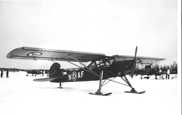 F6 Karlsborg 1952. Vinterövning i Norrland. En norsk Fi156 Storch och i bakgrunden F6 A21:or. Albumet är en del av en donation från Karl-Axel Hansson, Karlsborg. Förteckning över hela donationen finns i albumet samt som Word-dokument.