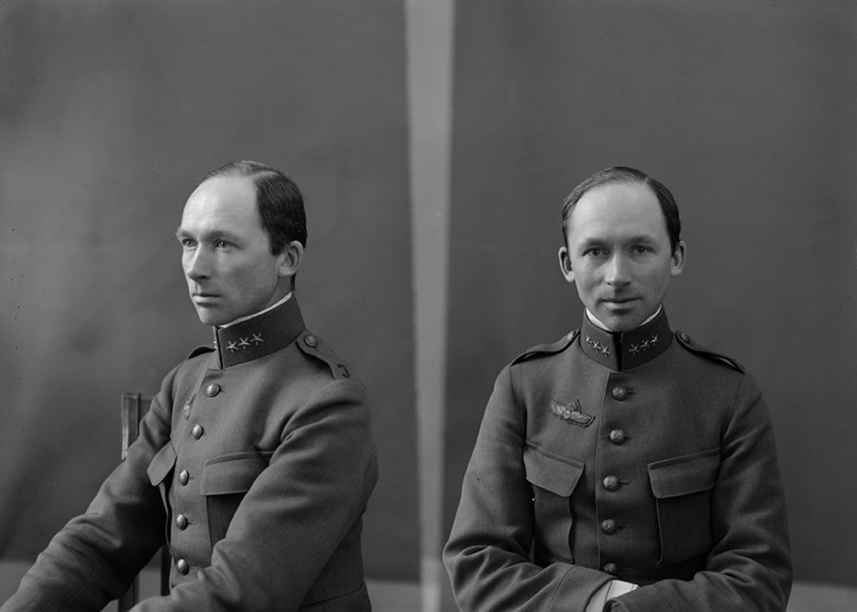 Porträtt av kapten E. Creutz vid fjärde flygkåren. 2 bilder.