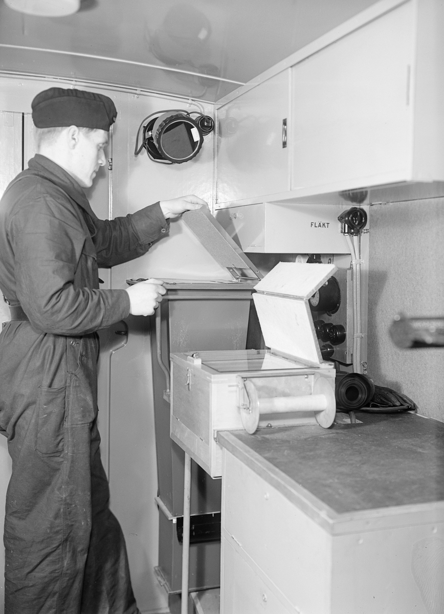 Kopieringsapparatur i fotobil modell m/42. Arbete med kopiering.