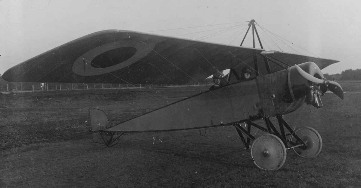 Flygplan Thulin D Morane Parasol med flygförare och flygspanare på flygfält i Ljungbyhed.