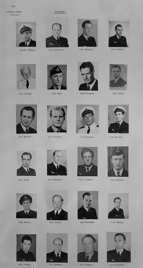 Porträtt. Sammanställning av deltagare i allmänna kursen på Flygkrigshögskolan (FKHS) 1949-1950. Avdelning B.