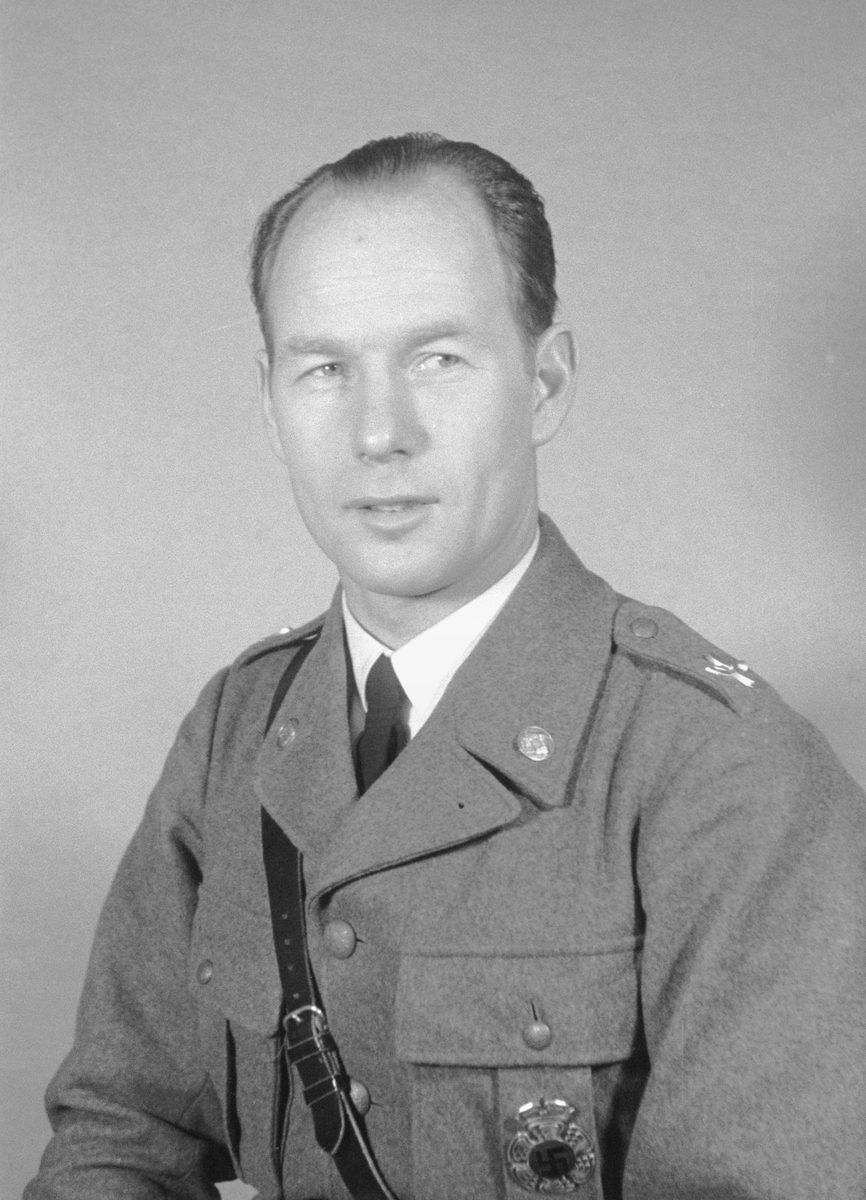 Porträttfoto av kapten Björn Bjuggren (nummer 750), stabschef vid F 19, Svenska frivilligkåren i Finland under finska vinterkriget, 1940.