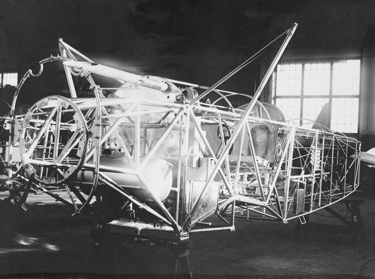 Kroppsskelett till flygplan S 6, Fokker före montering av motor, utrustning och klädsel på Centrala flygverkstaden Malmslätt, omkring 1930.