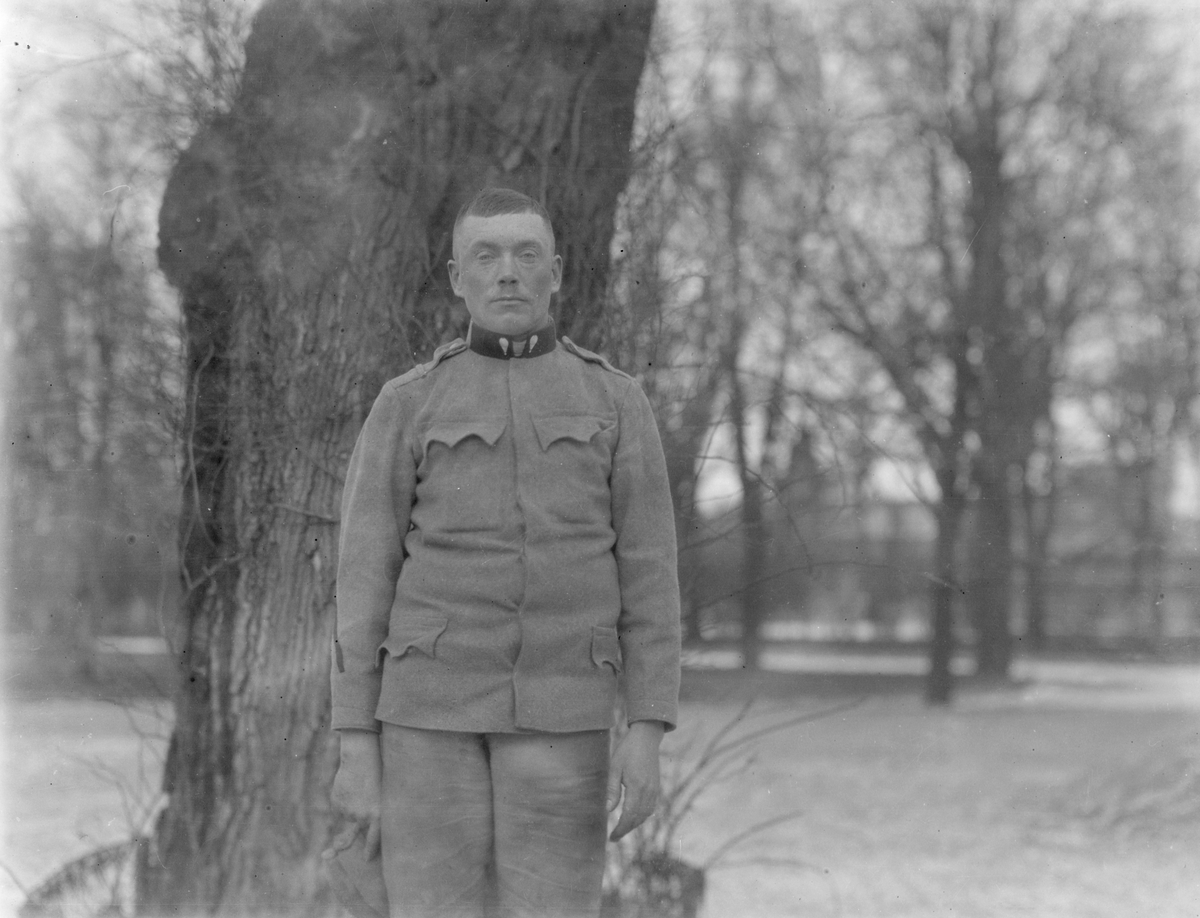 Porträttbild av militär från Österrike-Ungern utomhus, omkring 1914-1918. Helbild, framifrån.