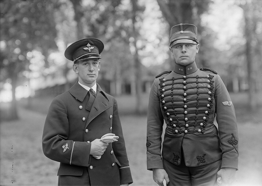 Porträtt av fänrik Sven Åhblom, militär flygförare och löjtnant Åberg, militär.