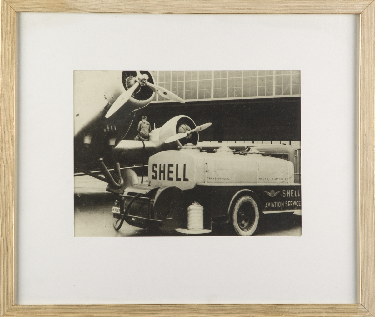 Ett civilt flygplan Junkers Ju 52 tankas. Inramat foto.