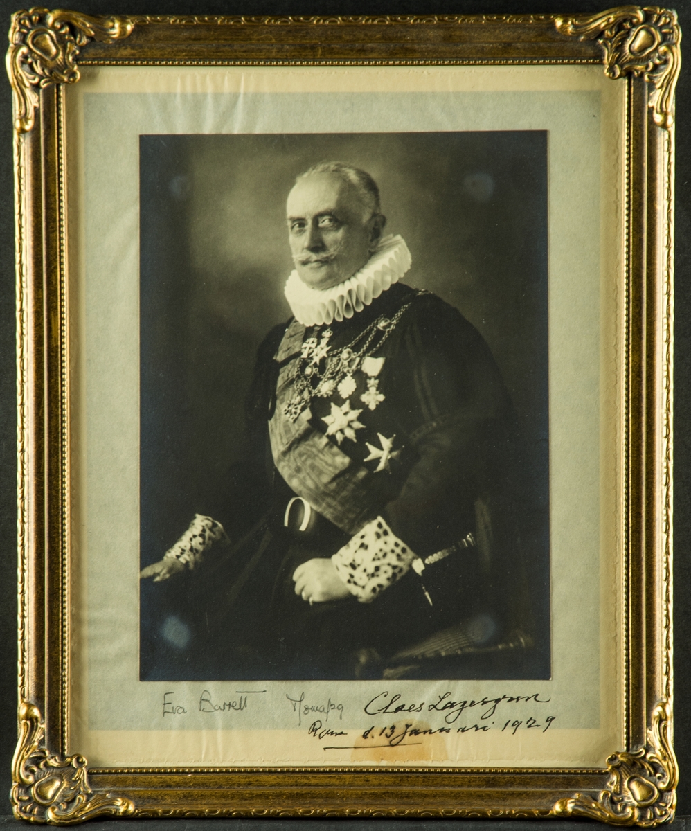 Foto av markis Claes Lagergren, kabinettskammarherre hos påven. Inramat sv/v fotografi med förgylld ram. Reproduktion från målat porträtt. Signerad av Lagergren.