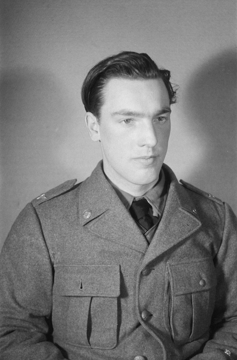Porträttfoto av översergeant Erik Valdemar Lundin (nummer 800), kommisarie vid F 19, Svenska frivilligkåren i Finland under finska vinterkriget, 1940.