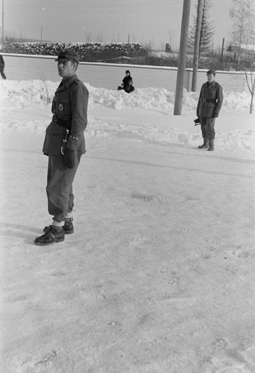 Stabschef Björn Bjuggren talar till markpersonal i Veitsiluoto vid F 19, Svenska frivilligkåren i Finland, den 12 januari 1940.