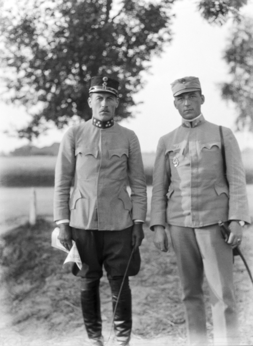 Porträttfoto av två militärer från Österrike-Ungern utomhus under första världskriget. Edmund Sparmann till höger.