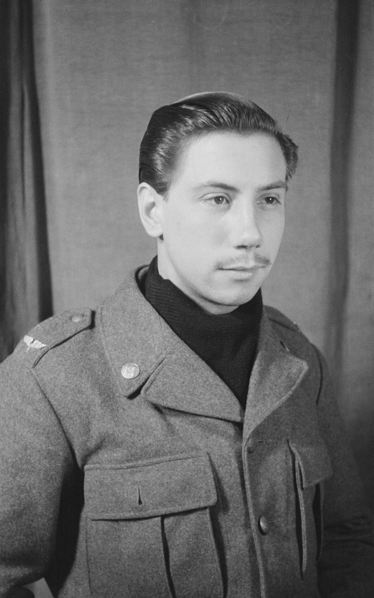 Porträttfoto av översergeant Arne Lennart Rydberg (nummer 767), signalist vid F 19, Svenska frivilligkåren i Finland under finska vinterkriget, 1940.