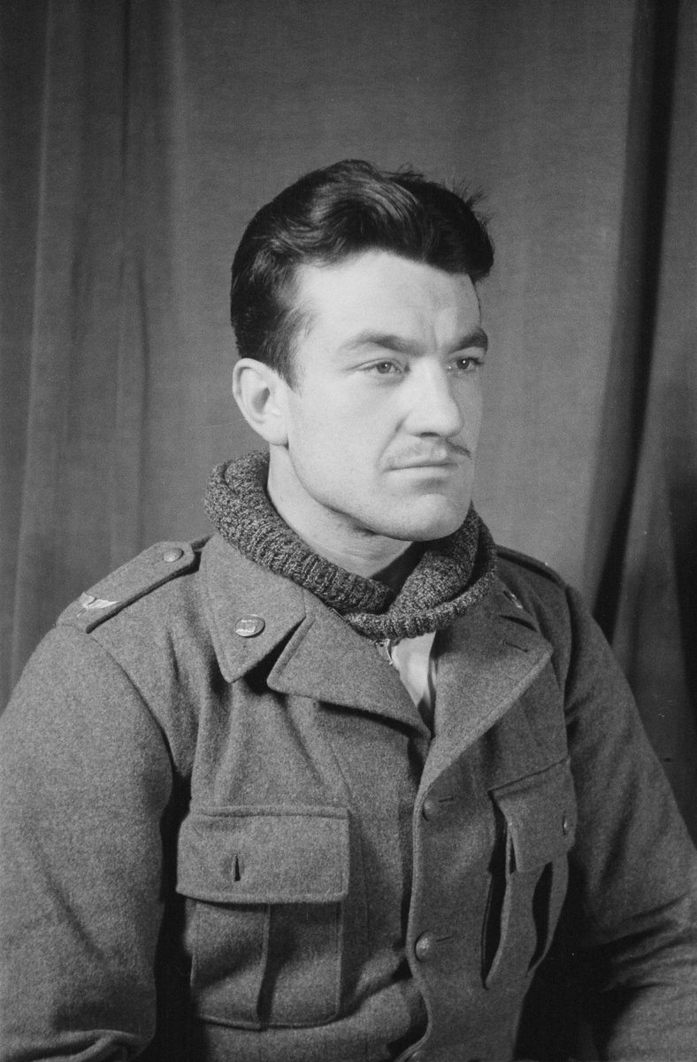 Porträttfoto av soldat Kurt Arnold Andersson (nummer 898), bilförare vid F 19, Svenska frivilligkåren i Finland under finska vinterkriget, 1940.