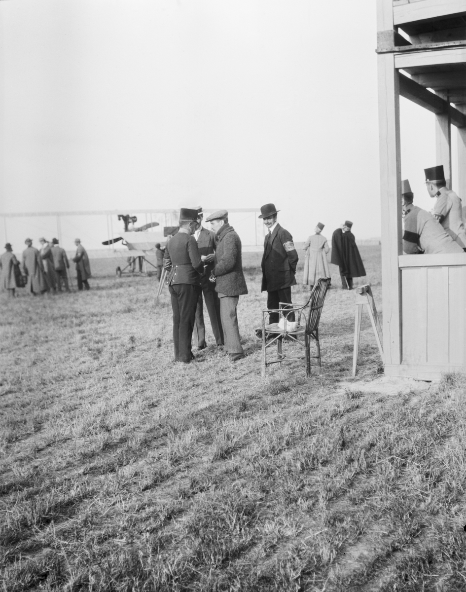 Militärer i samtal med Henri Farman under flygdag i Österrike-Ungern, tidigt 1910-tal.