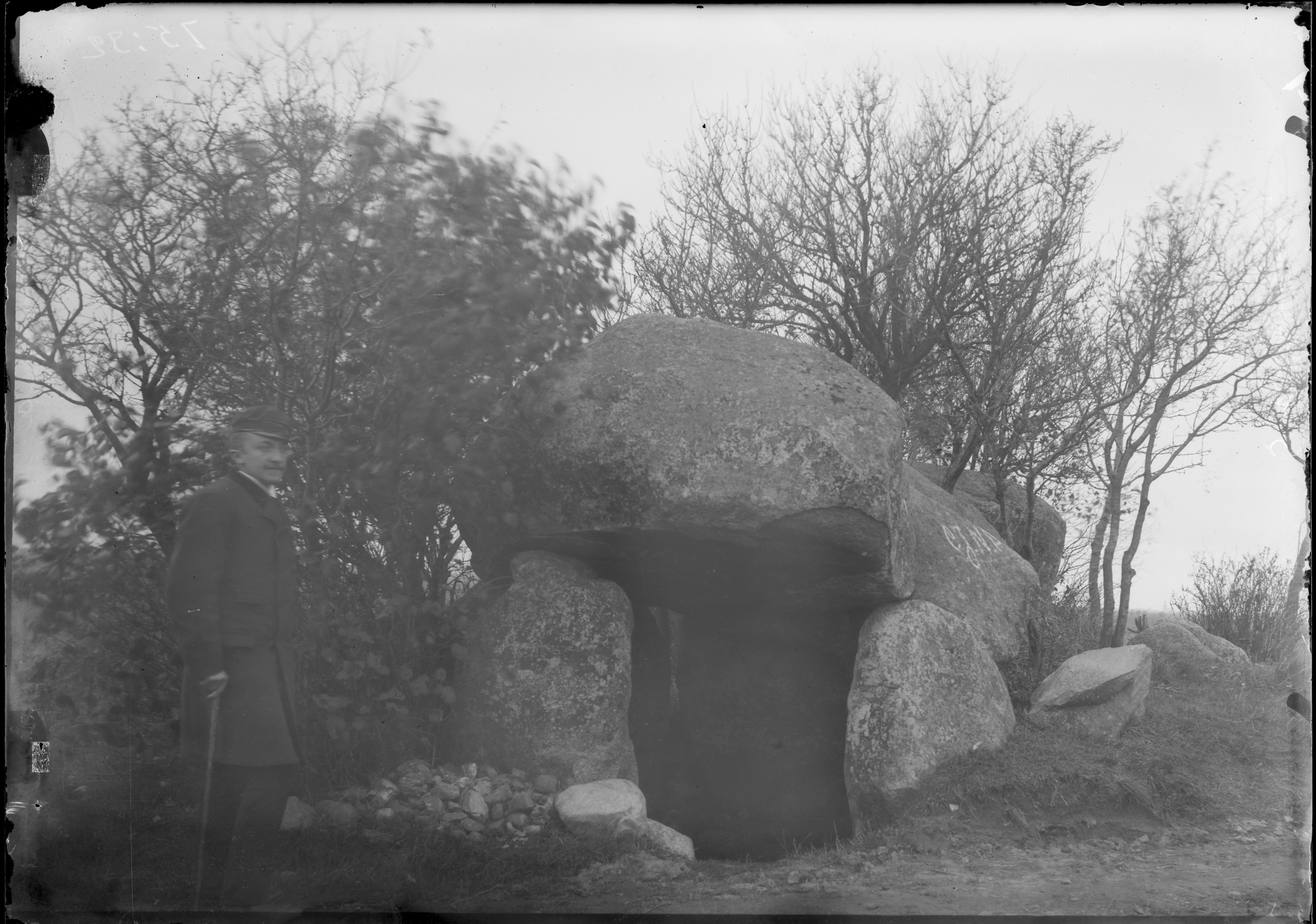 RAÄ-nummer Hammarlöv 2:1. Dubbelgånggrift i hög. Södra graven från sydost.