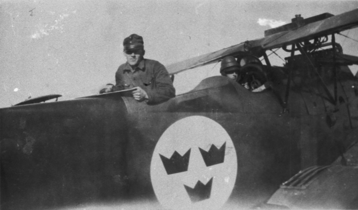 Flygförare och flygtekniker sitter i ett militärt flygplan Phönix Dront, ca 1926-1930.