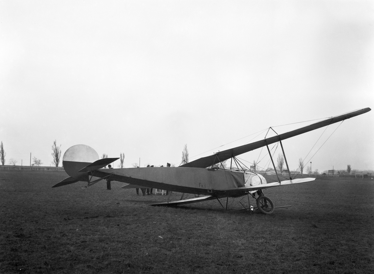 Militärt flygplan Fokker B.1 tillhörande Österrike-Ungern har landat snett på ett flygfält. Vy snett bakifrån.