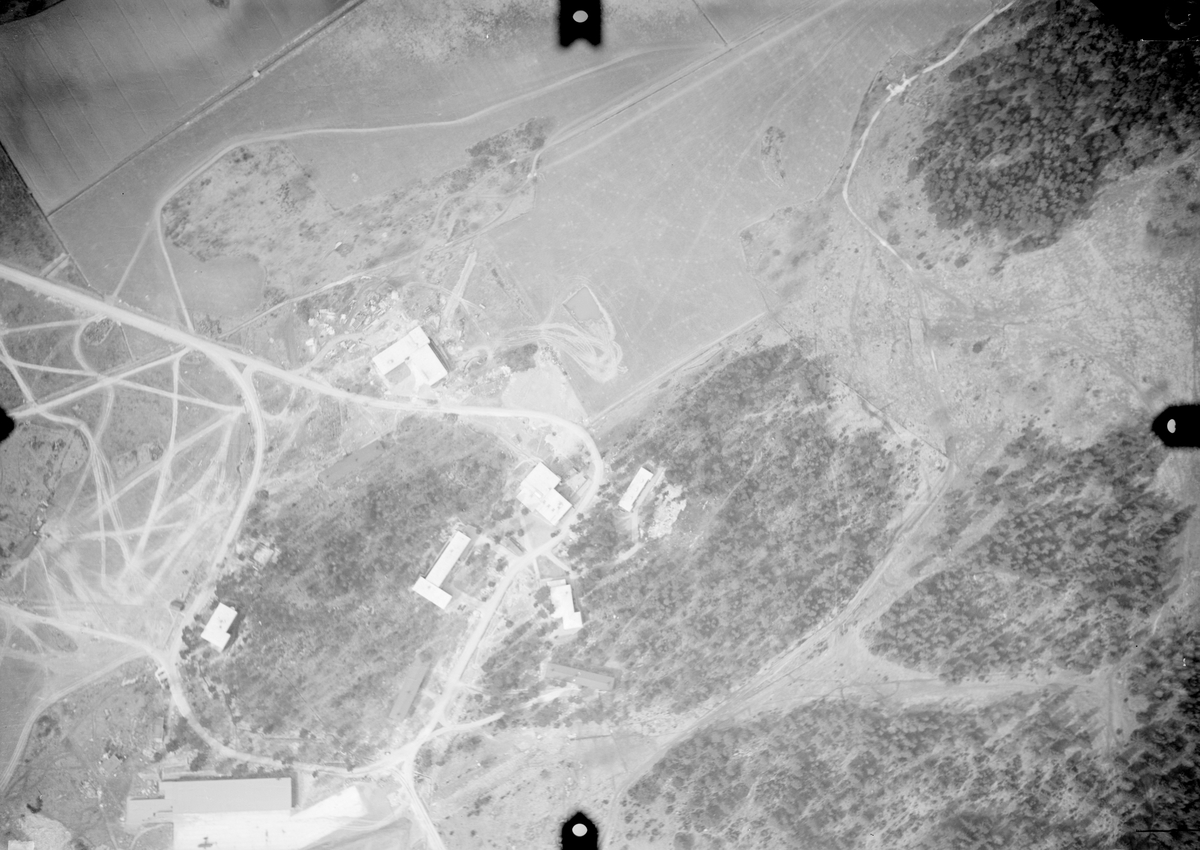 Flygbild från 1200 meters höjd av Barkarby flygstation, F 8, 1939.