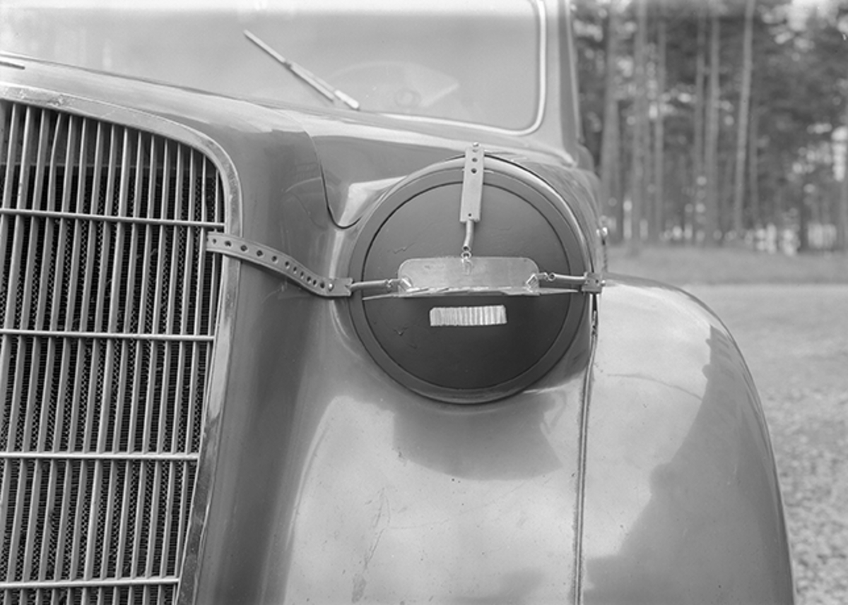 Avskärmningsanordning för strålkastare på bil på F 2 Roslagens flygflottilj.