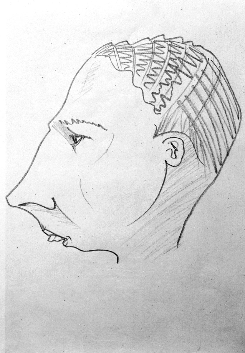 Karikatyrbild av löjtnant Hugosson ur flygvapnet vid F 3 Malmen. Avfotograferad teckning.