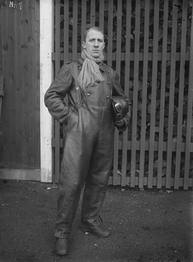 Porträtt av löjtnant Gabrielsson, militär flygförare.