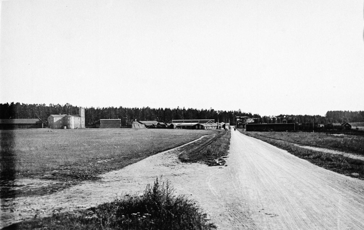 Landsvägen från Malmslätt. Vy mot söder och Centrala flygverkstäderna Malmslätt. Omkring 1930.