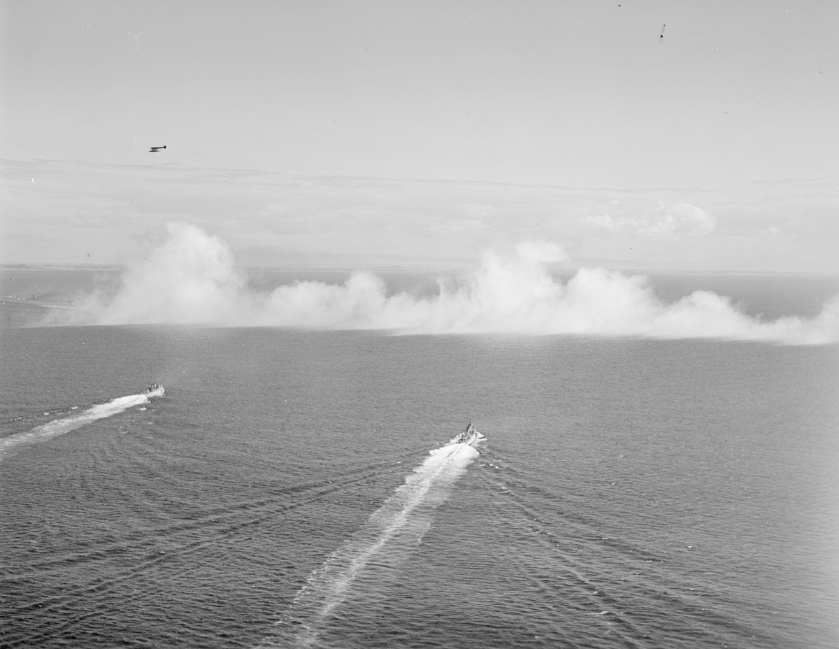 Dimbildningsfällning över hav från flygplan. I förgrunden syns två flygplan.