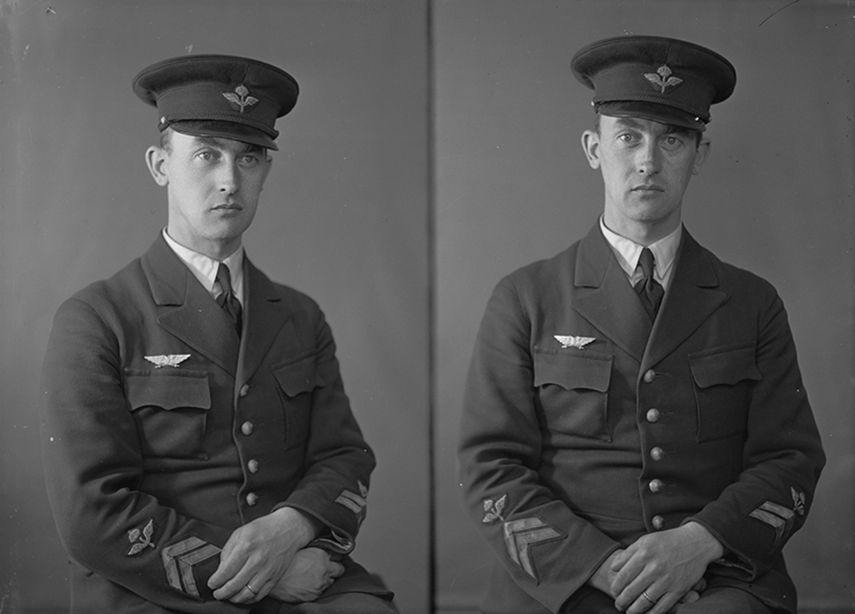Porträtt av sergeant Gottfrid Lundberg, militär flygförare. 2 bilder.