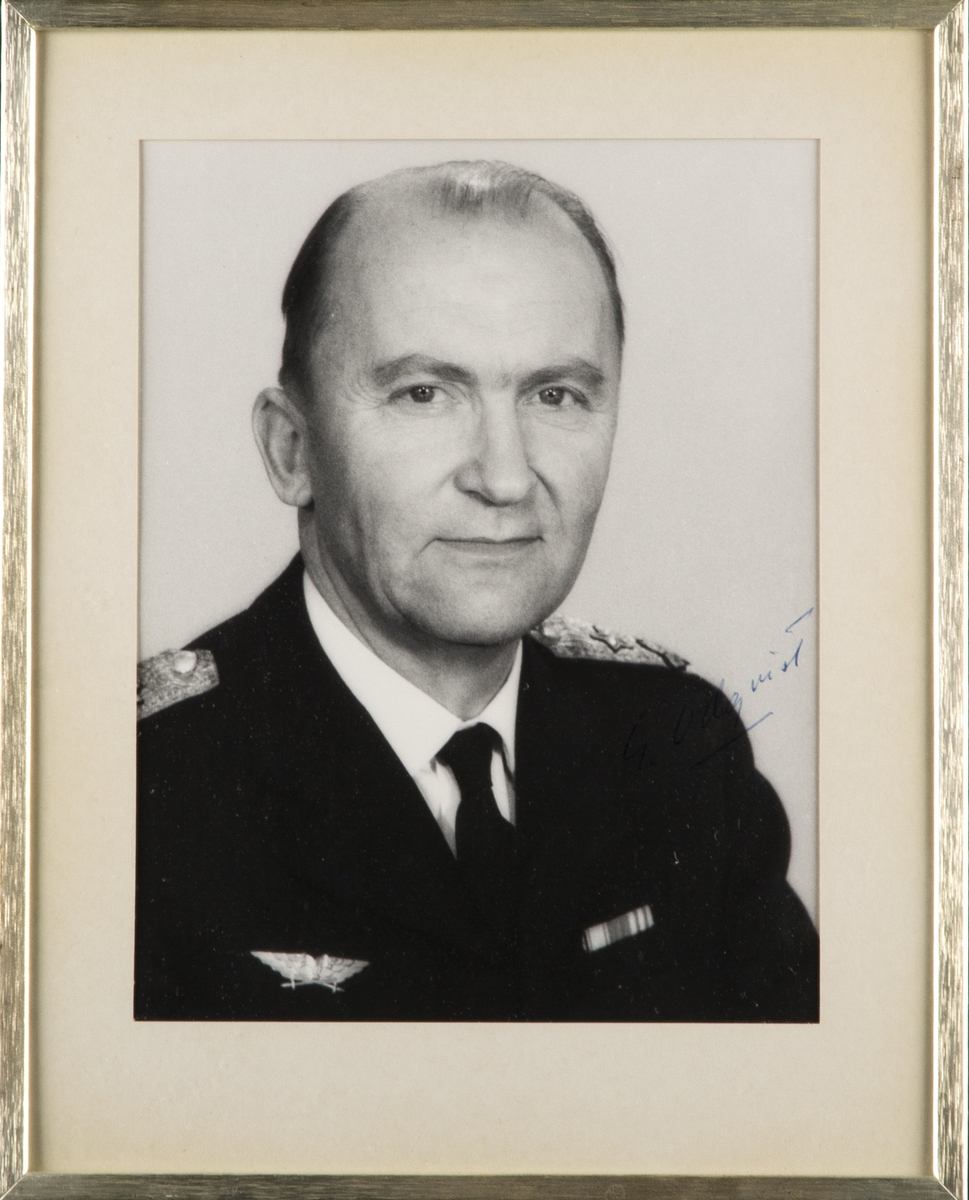 Porträttfotografi av Gösta Odqvist, chef för Flygstaben 1964-1966. Signerat, inramat foto.
