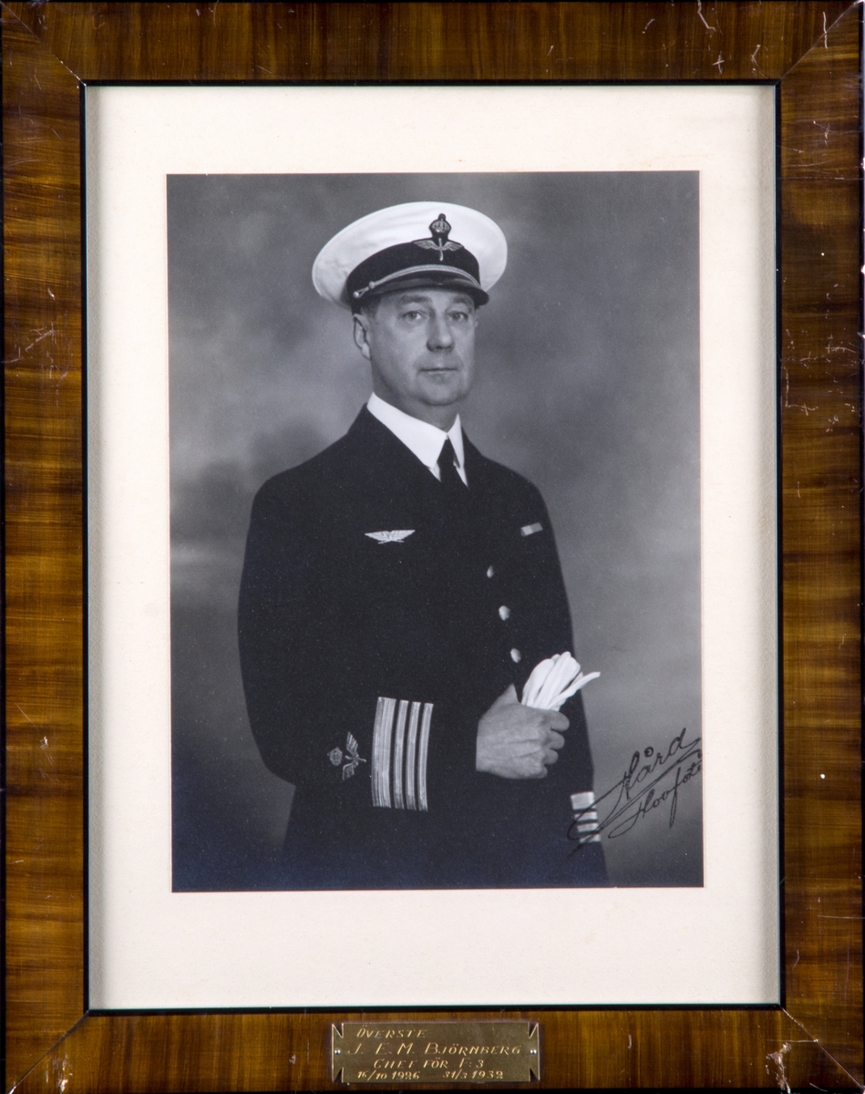 Porträttfotografi av Emil Björnberg, chef för Östgöta flygflottilj, F 3, 1926-1932. Inramat foto.