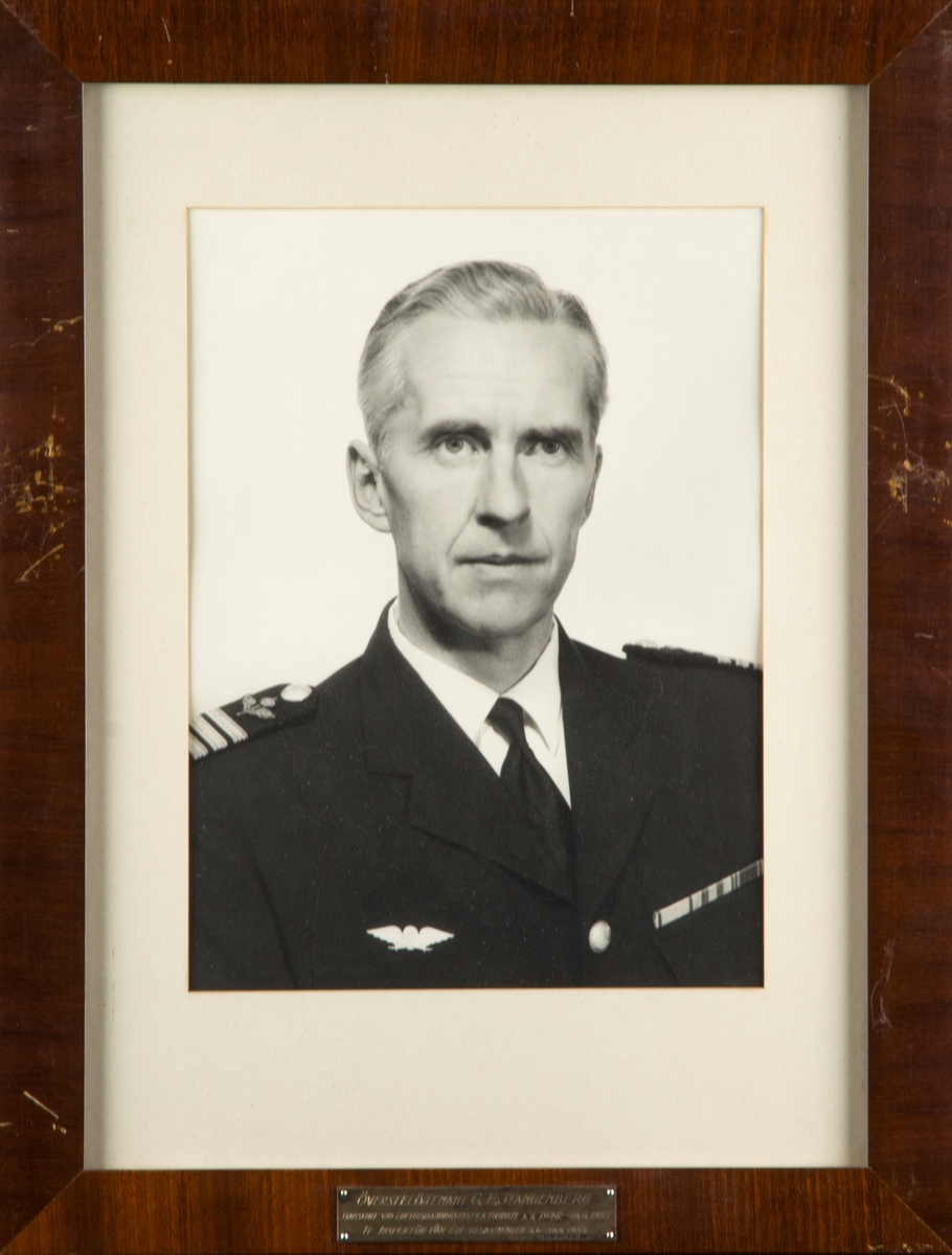 Porträttfotografi av Gerth Stangenberg, stabschef för Luftbevakningsinspektionen 1948-1957. Inramat foto.