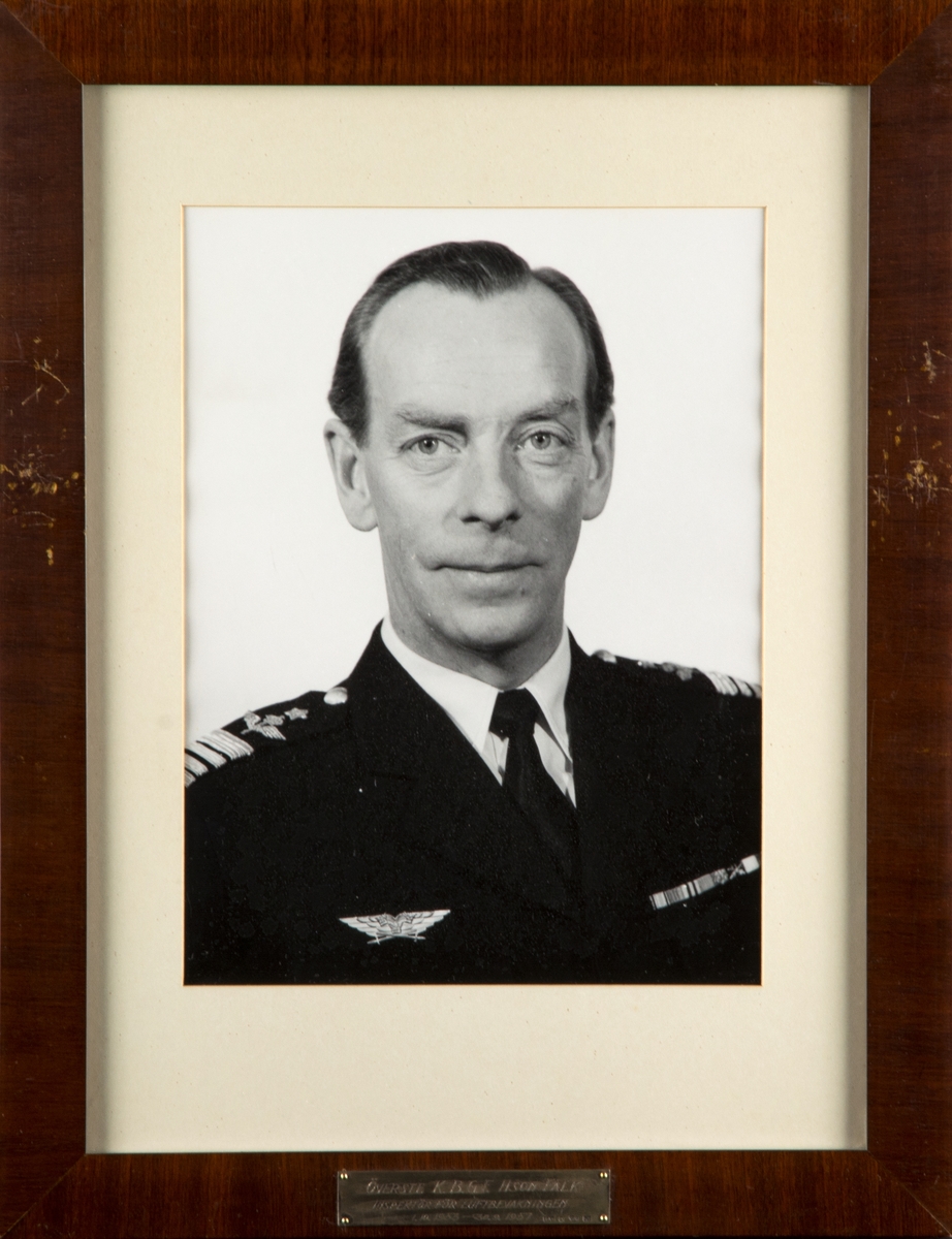 Porträttfotografi av Greger Falk, inspektör för Luftbevakningen 1953-1957. Inramat foto.