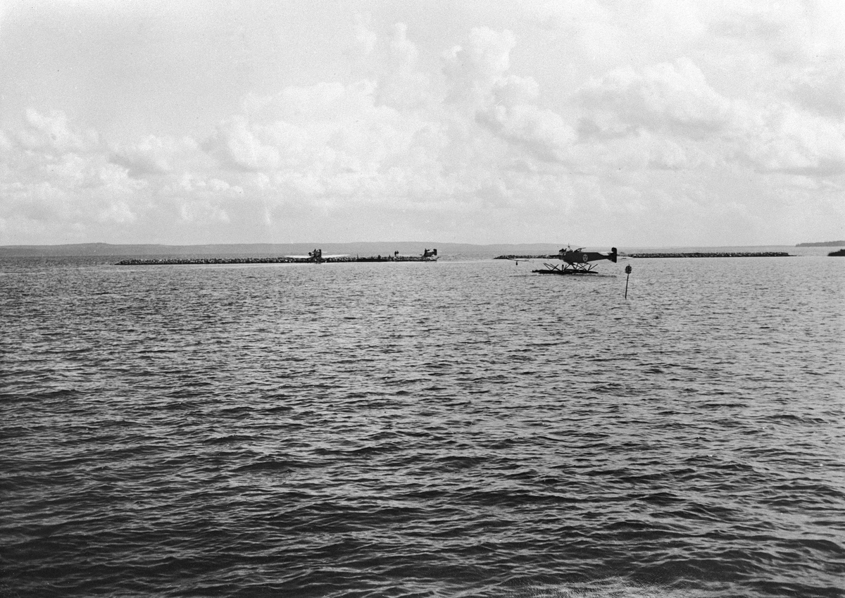 Tre flygplan Hansa typ 42, Heinkel He 2, kör på sjön Roxen omkring 1924-1926.